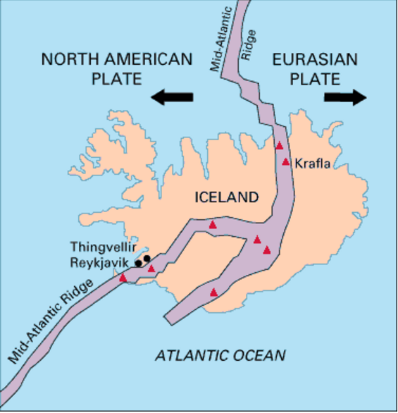 比較之下, 台灣是在板塊的交界處~而且板塊是一直相親相愛互相擠壓~ 冰島這裡則是兩個板塊想分手, 只是速度有點慢, 一年分開2cm~典型的藕斷絲連~還會生出新的土地面積!超強
